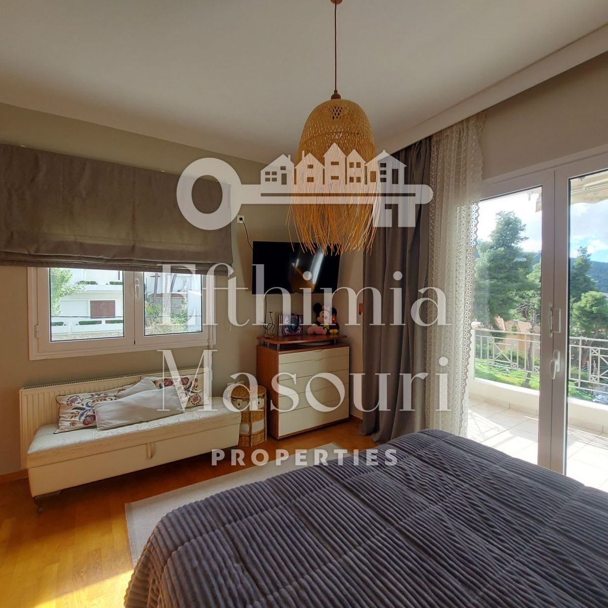 Μεζονέτα Προς Πώληση, 1ος, 2ος και Σοφίτα στην περιοχή: Διόνυσος - Κέντρο. Το εμβαδόν του ακινήτου είναι 250 τ.μ. και βρίσκεται σε οικόπεδο 840 τ.μ. Η Κατοικία είναι πολύ φωτεινή , γωνιακή , προσόψεως , διαμπερής με άνετα μπαλκόνια με θέα ,. Βρίσκεται σε εξαιρετικό σημείο της περιοχής , σε ήσυχη γειτονιά μέσα στο πράσινο . Έχει κατασκευαστεί το 2005 και ανακαινίστηκε το 2021.Αναπτύσσεται σε 2 άνετα , φωτεινά και λειτουργικά επίπεδα συν Σοφίτα . ( 1ος όροφος ) χώρος υποδοχής , μεγάλο σαλόνι με τζάκι , βγαίνει σε άνετο μπαλκόνι , τραπεζαρία , μικρό καθημερινό καθιστικό ή χώρος γραφείου , ημιαυτόνομη φωτεινή κουζίνα με έξοδο σε αυλή αποκλειστικής χρήσης , WC ξένων και γκαρνταρόμπα . Με άνετη ξύλινη σκάλα ανεβαίνουμε στον ( 2ο όροφο ) όπου έχουμε ανοικτό χώρο καθιστικού , 3 άνετα υπνοδωμάτια όλα με τα μπαλκόνια τους και ανεμπόδιστη θέα , 1 μπάνιο και 1 δωμάτιο Laundry . ( Σοφίτα ) ενιαίος φωτεινός αυτόνομος γραφείο χώρος ιδανικός για 4ο υπνοδωμάτιο ή γραφείο , βγαίνει σε βεράντα με απίστευτη θέα . Η θέρμανση του ακινήτου είναι Ατομική , είτε με πετρέλαιο είτε με Αντλία θερμότητας, ενώ επίσης διατίθεται Θέρμανση ανά επίπεδο. Διαθέτει πλακάκια σε όλους τους χώρους και ξύλινα δάπεδα στα υπνοδωμάτια , κουφώματα αλουμινίου , διπλά τζάμια , A/C ,Τέντες, Αποθήκη (12 τ.μ. ) , Σοφίτα, Εσωτερική σκάλα, κοινόχρηστος Κήπος, Πόρτα Ασφαλείας, Συναγερμός, Κάμερες Ασφαλείας, Χωρίς Κοινόχρηστα , Γραφείο, Laundry , Πάρκινγκ κλειστό 2 θέσεων . Τιμή: €450.000. Efthimia Masouri Properties, Τηλέφωνο Επικοινωνίας: +306932378379, email: info@efthimiamasouriproperties.gr
